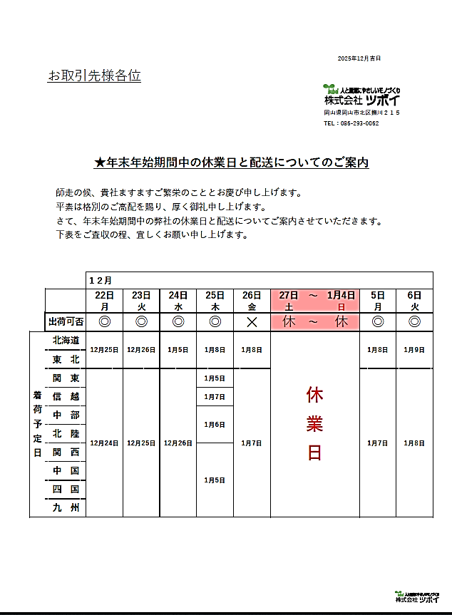 2022/12/23 冬季休業(年末年始)のお知らせ