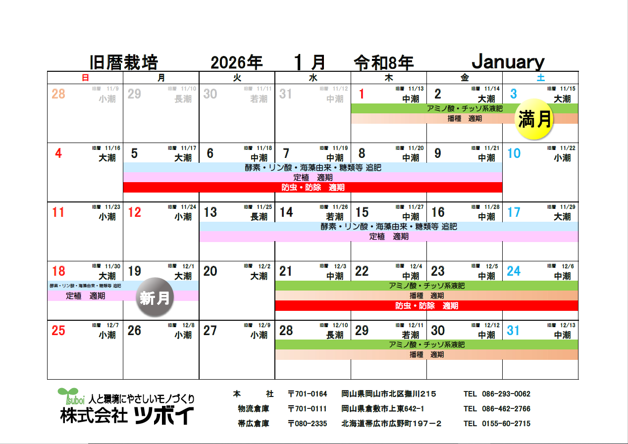 2026/01/06 旧暦栽培カレンダー 2026 修正版をアップいたしました。