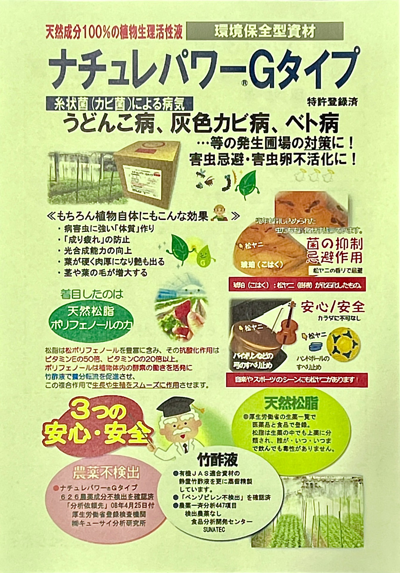 また、葉面散布剤としての働きも素晴らしいものがあり、松脂が持っている