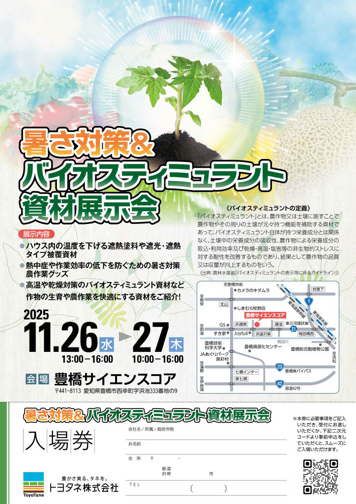 昨年から2回目となります、トヨタネ株式会社様主催の展示会でございます。